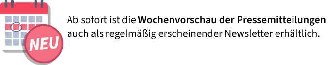 Die Veröffentlichung der Pressemitteilungen erfolgt in der Regel um 10:00 Uhr. Die Veröffentlichungstermine der Folgewoche werden jeweils freitags bekanntgegeben.